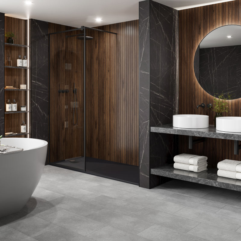 Der Kontrast von dunklen Tönen in Verbindung mit dem Braun unseres Holzlamellen-Wandpaneels lässt jeden Raum magischer und anziehender wirken und zu einem auffälligen Blickfang werden. Diese Farbkombination ist somit ein Muss für diejenigen, die ein wenig Opulenz und Glamour in ihr Zuhause einziehen lassen möchten.
